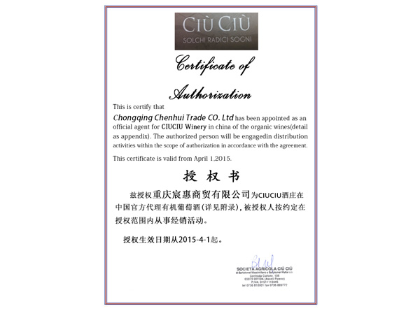 重慶市宸惠商貿有限公司是一家經營有機商品的進口商, 公司致力于為廣大中國消費者提供高品質高性價比的葡萄酒,是全國第一批酒莊莊主